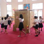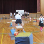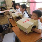 「迷路」や「スーパーボールすくい」などのお店がありました。低学年の子どもたちも、店番をします。高学年は内容の説明や進行、盛り上げ役。