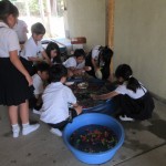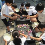 今日は、たてわり班で計画と準備をし、チームに分かれてお店を回る「こどもまつり」でした。